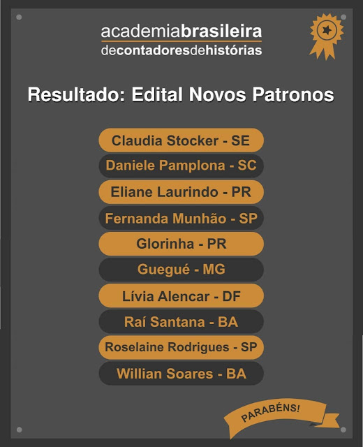 A Academia Brasileira de Contadores de Histórias (ABCH), lançou neste ano 2021 a convocação para a ingressão de novos Patronos da instituição. Foram selecionados 10 representantes em todo o Brasil, dois de cada região do país.